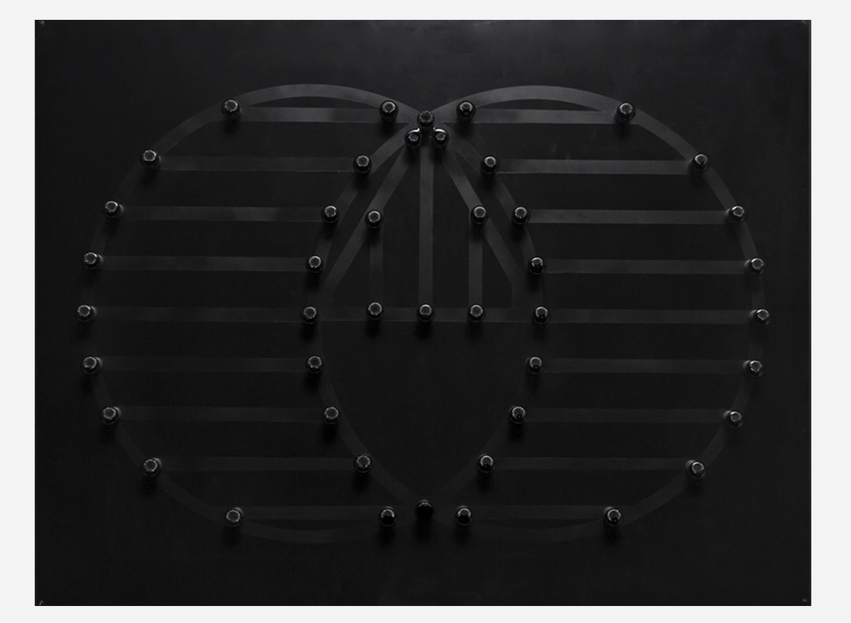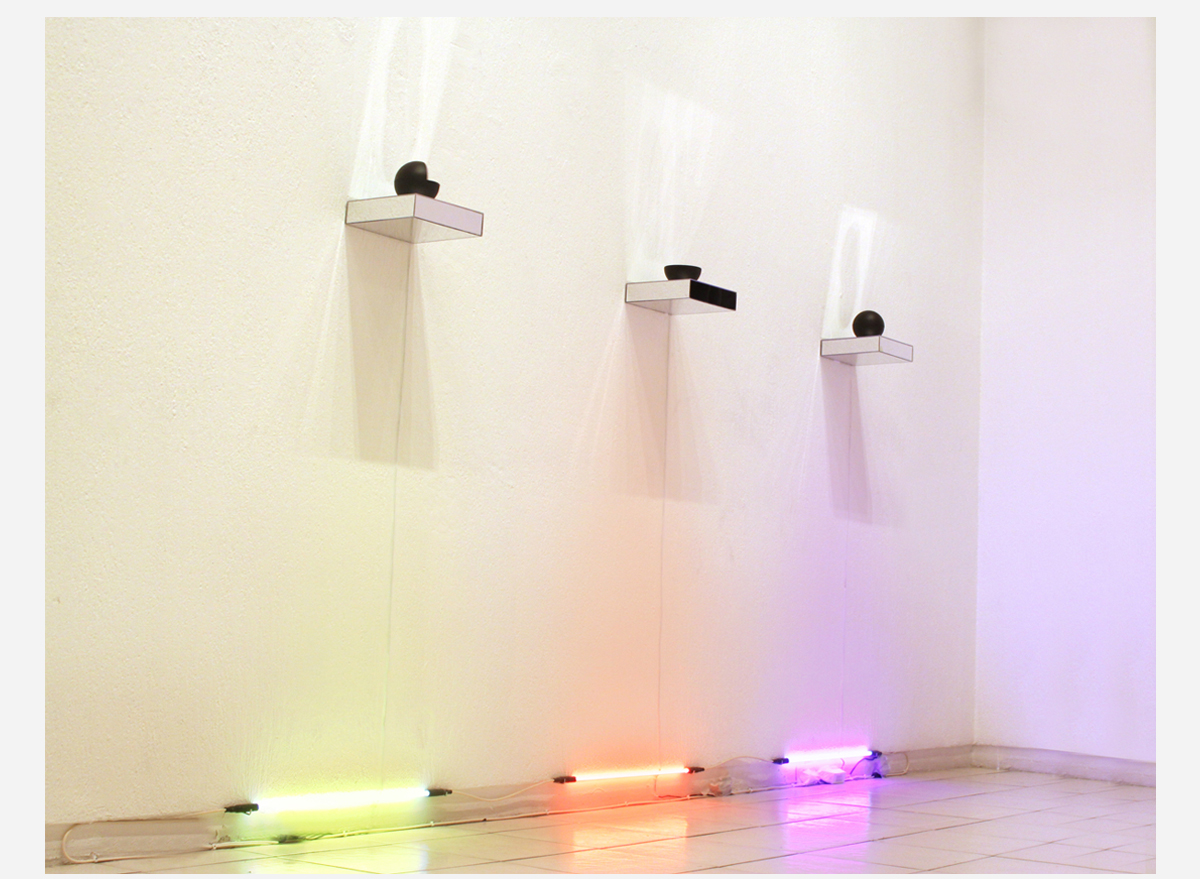 Javier Cardenas Tavizon "Union De Tres Puntos / Three point Union" 2012 Magnetic field; Magnets, ferrofluid, acrylic paint.