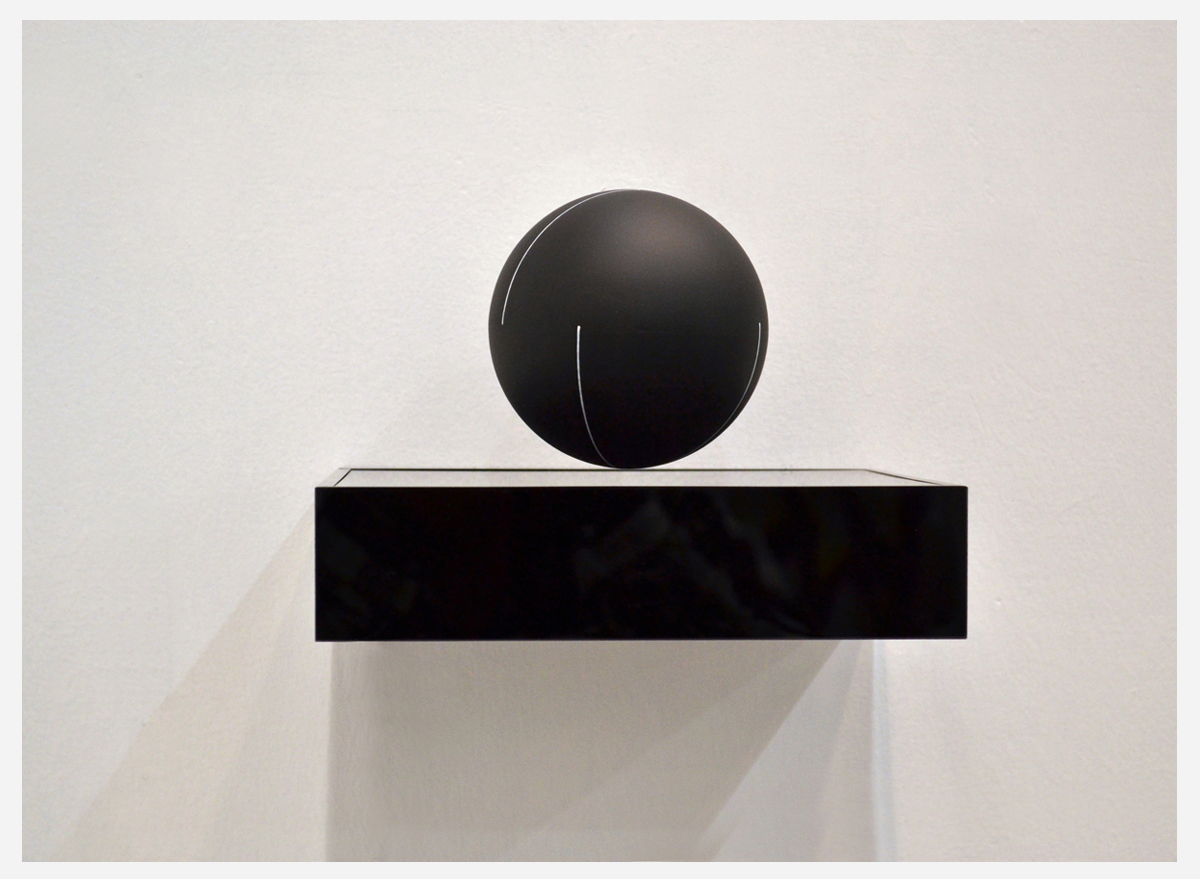 Levitating Sphere, Acrylic black box, paint and magnetic material. "Equilibrium Series” .